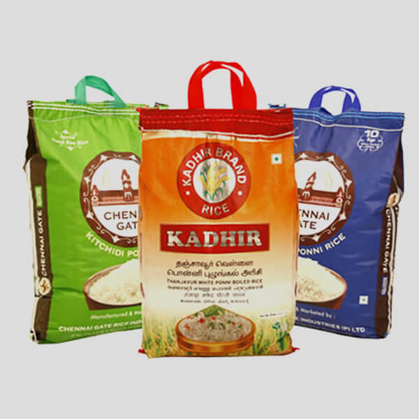 variety of materials and finishes are available to preserve the products in diverse weather conditions optimally. Our Bottom Gusset Bags are produced with various finish options like matte, glossy, matte metalized Bopp Films with high-quality print on it. The fabric is laminated with these different finished BOPP films to provide the final bags their required aesthetics. We also offer Bottom gusseted bags with a liner that provides optimum strength and preservation for the products. The bag is obtainable with handles like PP or NWF, and stitching methods like top hemming and cross-stitch handles are also available.